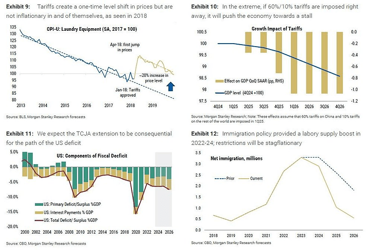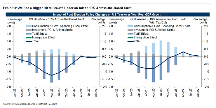 Tariffs. US GDP will drop due to higher costs and lower demand, offset by corporate tax cuts, and prices inside the US will jump again. But it will help with deflation outside of the US.
