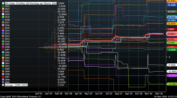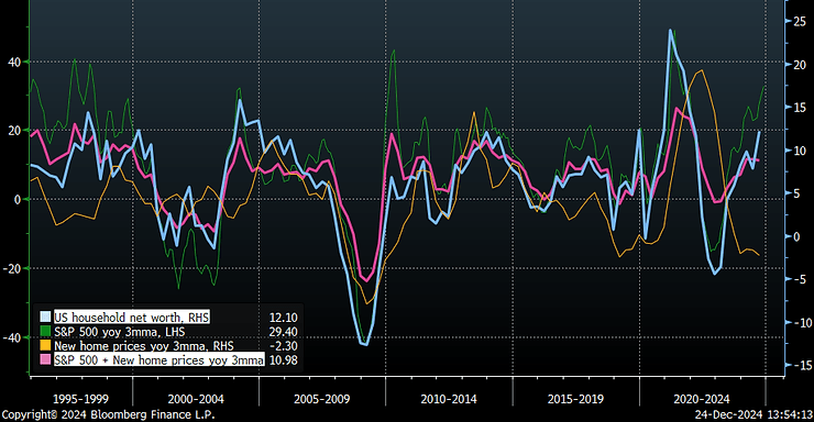 Wealth effect. S&P returned roughly 26% in 2024, one of the largest amounts in the last 30 years. Average S&P return during this period was 8.5%.