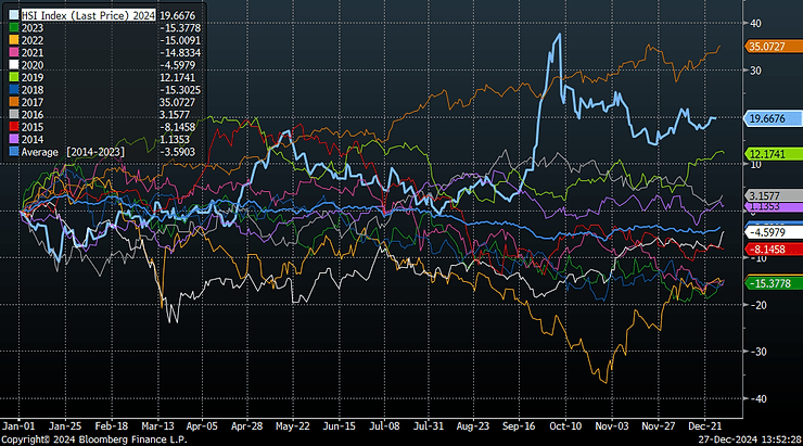 1. Chinese economy is starting to pick up and perform better than expected, as consumer confidence rebuilds, economic stimulus spreads. China remains strong in car manufacturing, semiconductors, AI, energy technologies. Equities perform well next year.