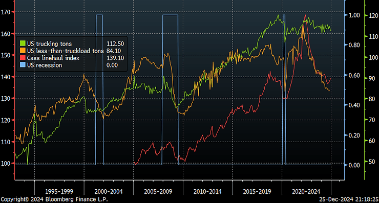 US trucking remains in recession, as commercial capex ex AI has been slowing down since early 2023.